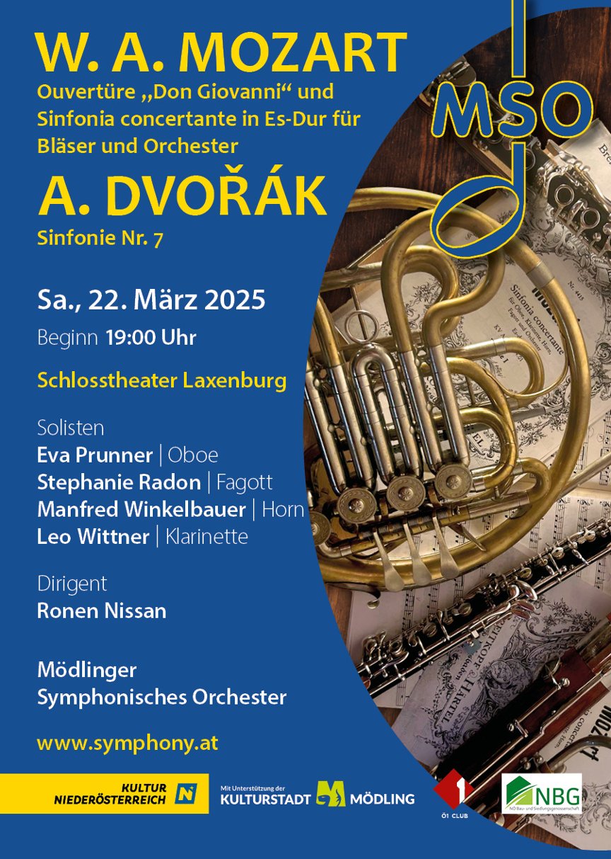 In der nachfolgenden „Sinfonia concertante in Es-Dur für Bläser und Orchester” von Mozart konnte das Orchester mit vier Solisten aus den eigenen Reihen aufwarten: Eva Prunner (Oboe), Stephanie Radon (Fagott), Manfred Winkelbauer (Horn) und Leo Wittner (Klarinette). Diese überzeugten mit versierter Virtuosität.
